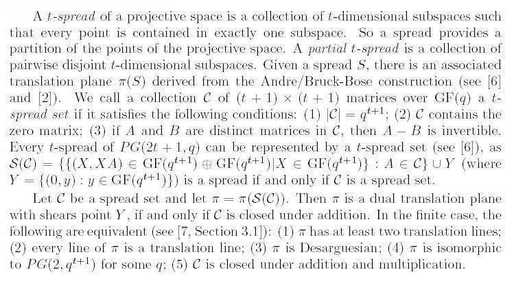 terms "partial spread" and "orthogonal" is directly related to my 1978